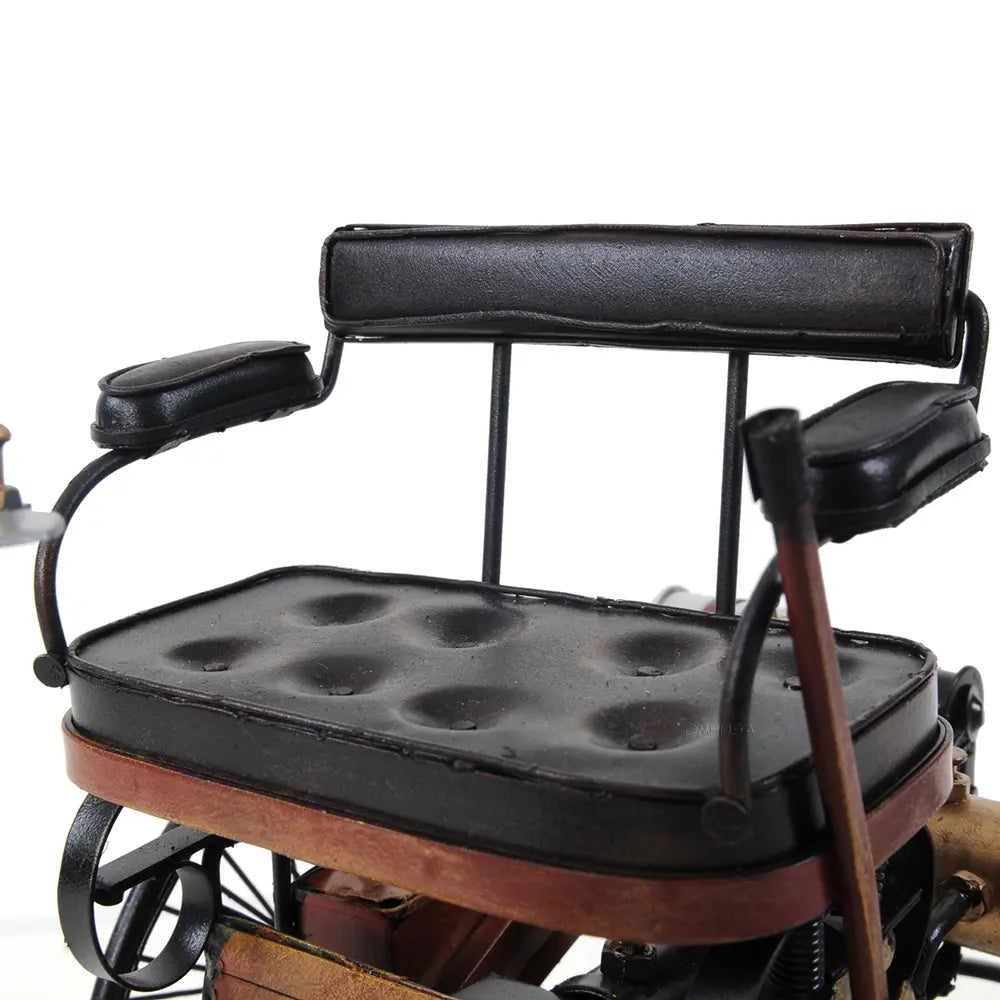 These automobile models are 100% iron frame with metal, rolling wheels. The decaled insignia and painted details give more of an authentic look. The models have seats as well as a steering wheel. The exterior details such as