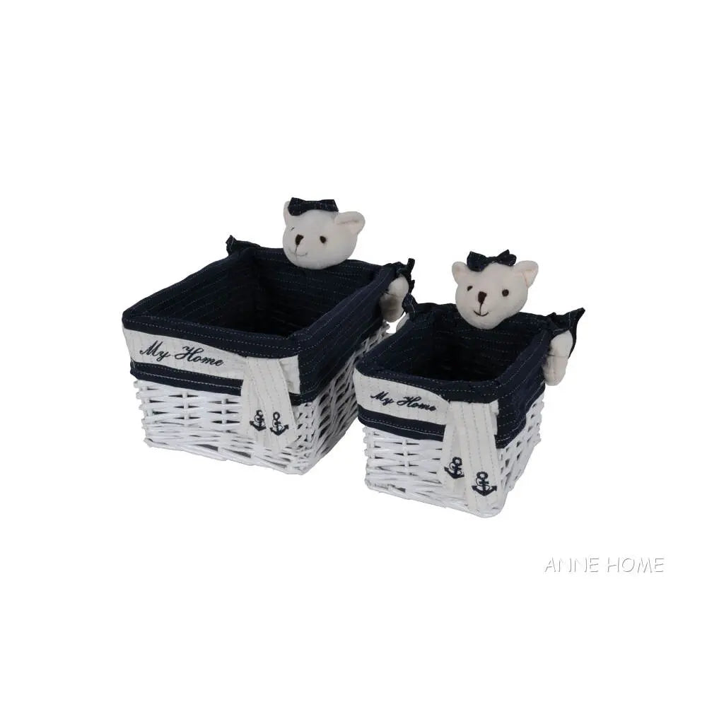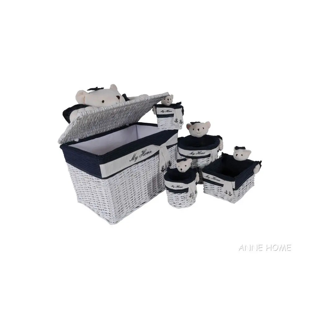 Anne Home - Set of 5 Rectangular Willow Baskets Bear Design