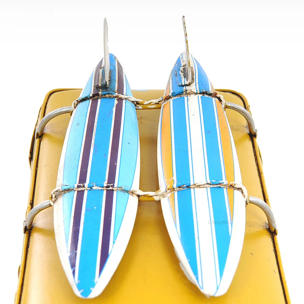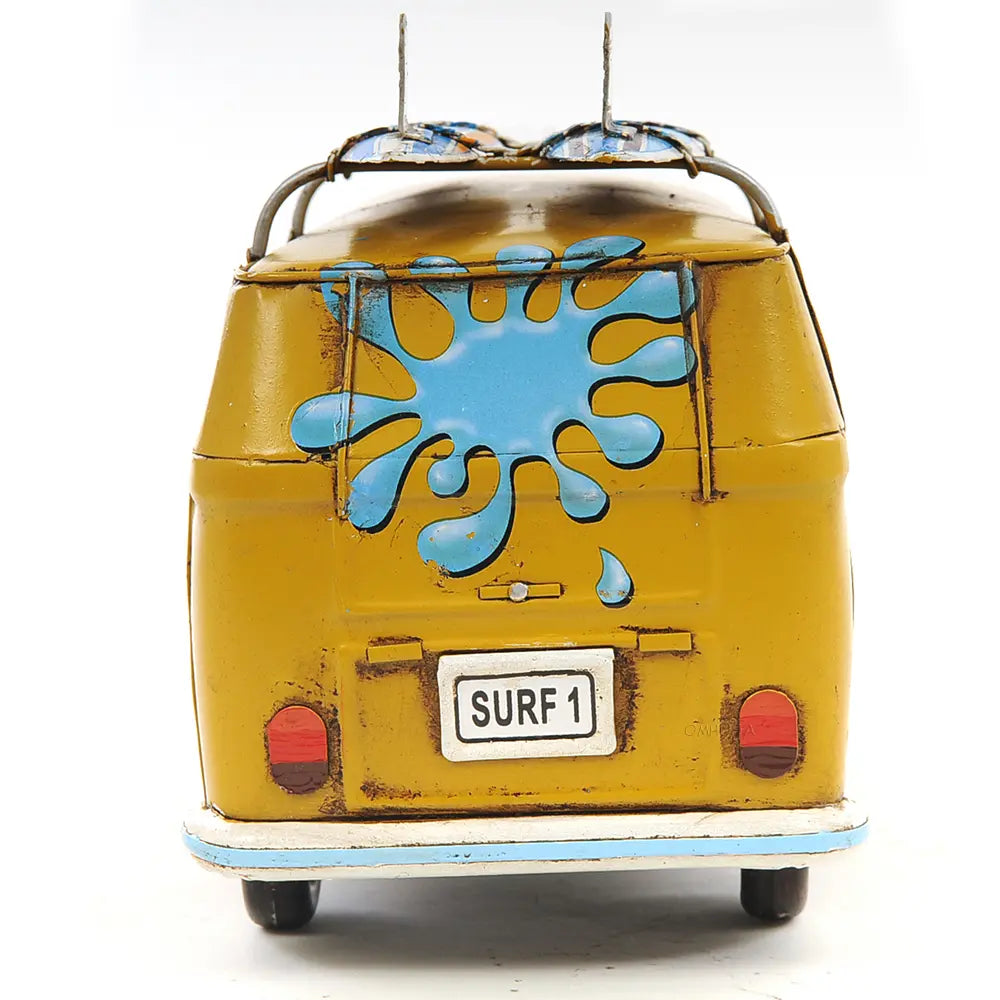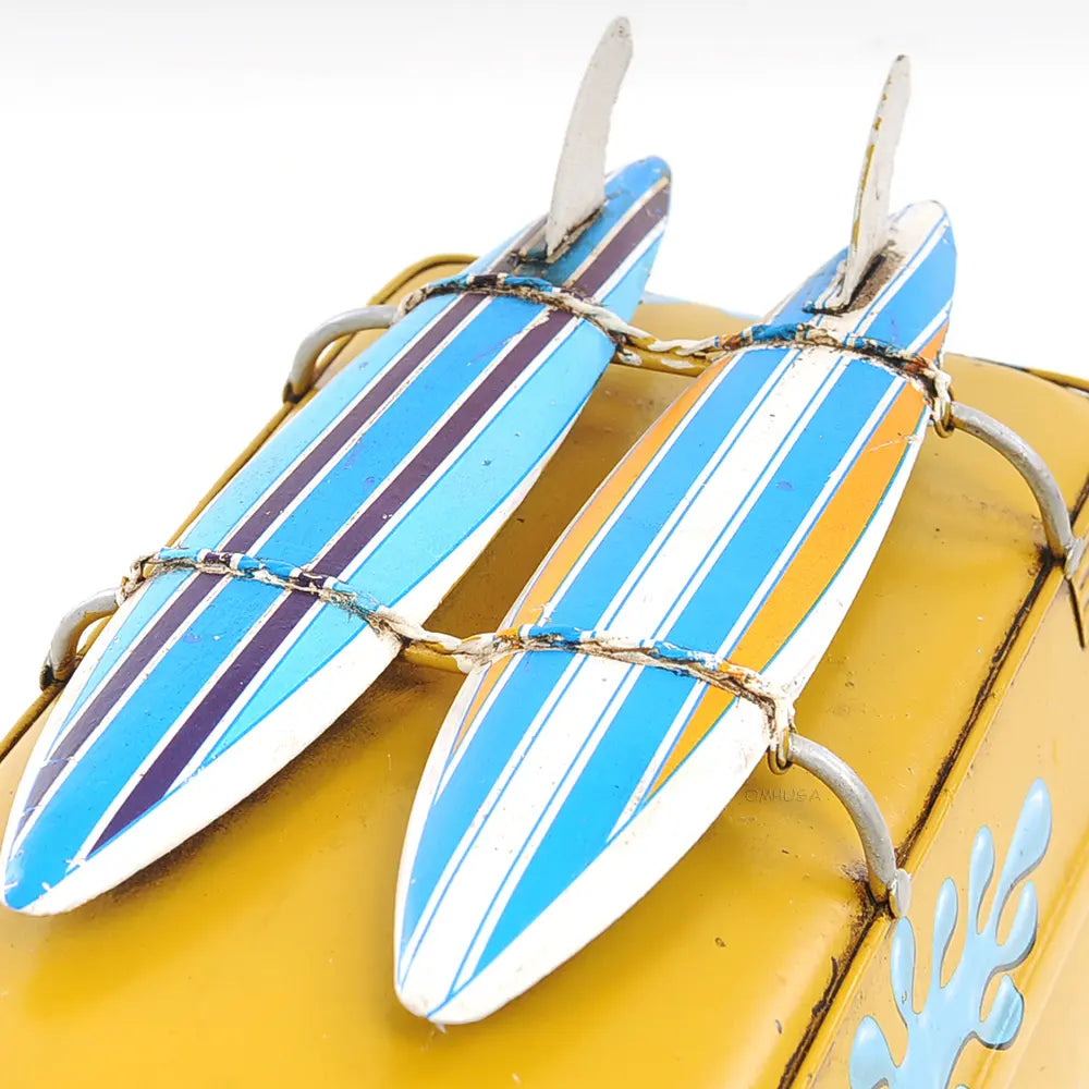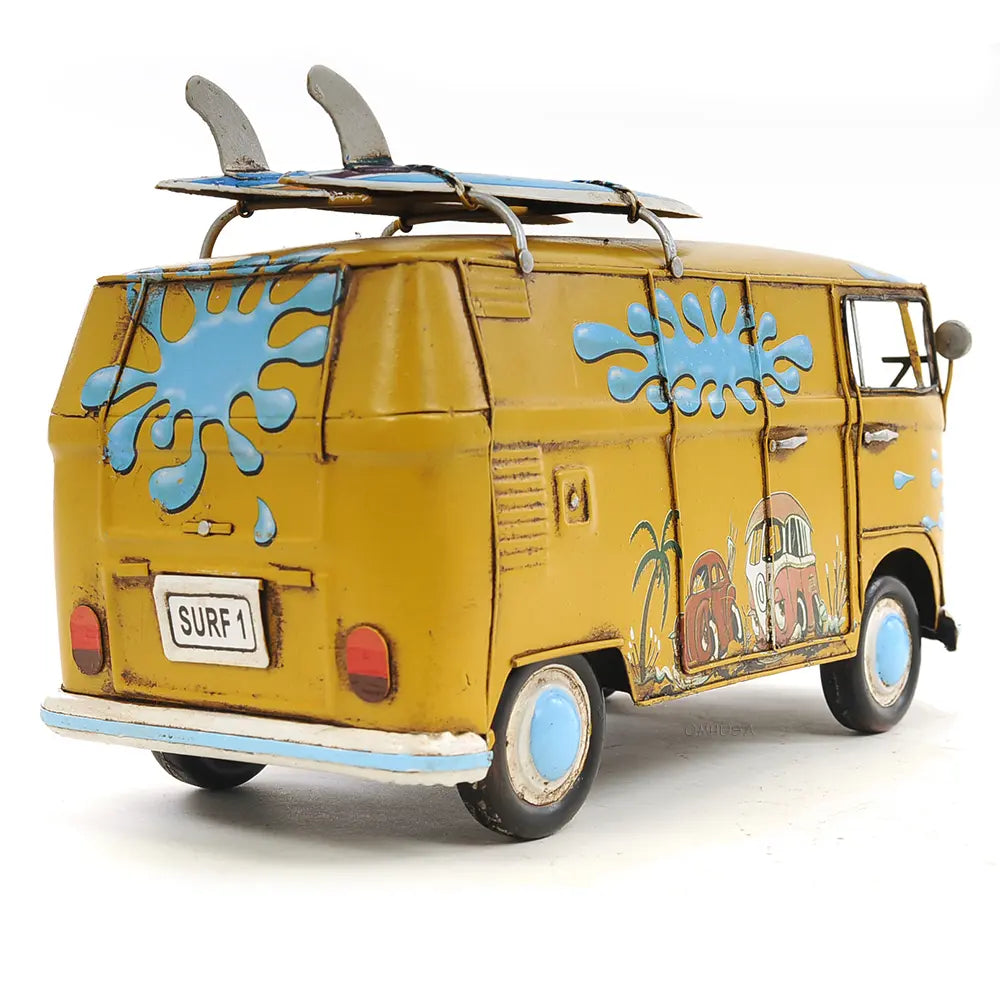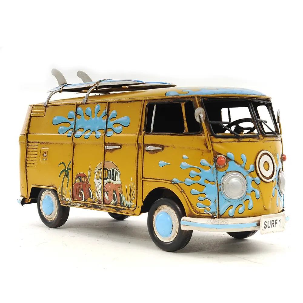 Nothing captures the spirit and nostalgia of the 1960s like a Volkswagen Bus with its split window screen. This 1967 Volkswagen Bus is scale at 1:18. It is handcrafted in iron, with remarkable level of fine detail and in a Union Jack Design. It features authentic paint, light weight body chassis, and two surfboards on a roof rack. A must for the collector and enthusiast!
