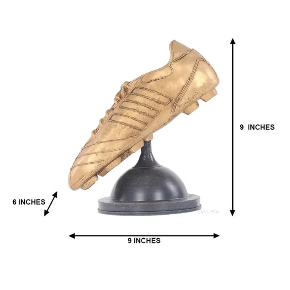 The Golden Boot or Golden Shoe is an association football award presented each season to the leading goal scorer in league matches from the top division of every European national league. Our Golden Boot is made of 100% iron frame; like all of our models, no plastic parts have been used. The boot detaches from the base for easy dis-assembly, if needed. The model is handmade and painted in gold just like a real one.