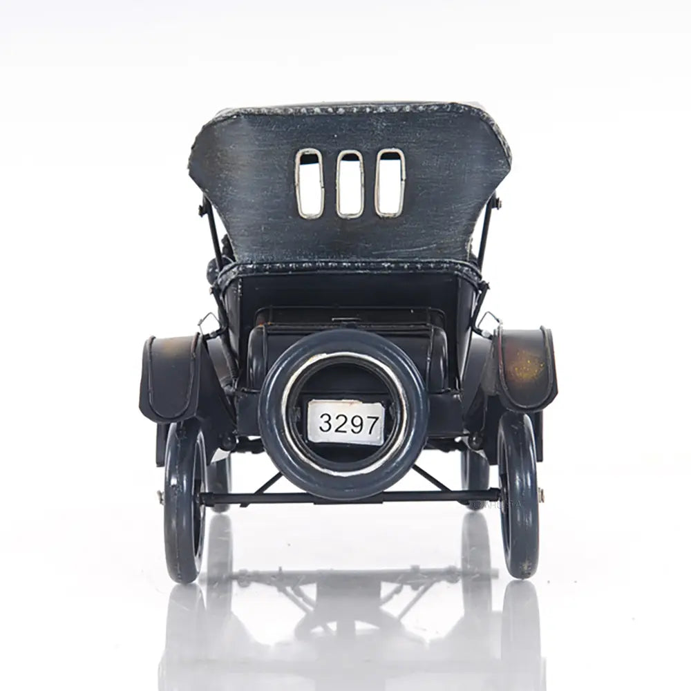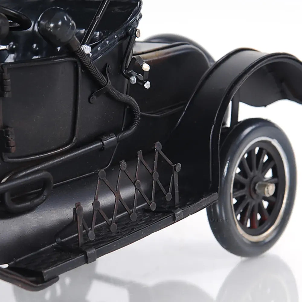 The Ford Model T also known as "Tin Lizzie" is an automobile that was produced by Henry Ford's Ford Motor Company from October 1, 1908, to May 26, 1927. It is generally regarded as the first affordable automobile, the car that opened travel to the common middle-class American. This automobile model is 100% iron frame with metal, rolling wheels. The decaled insignia and painted details give more of an authentic look. The model has seats as well as a steering wheel and minor details on the dash. The exterior details, such as the spare wheel, are securely welded on. When shipped, the item is packaged with foam inserts banded to pieces of cardboard to keep them held sturdily in place.