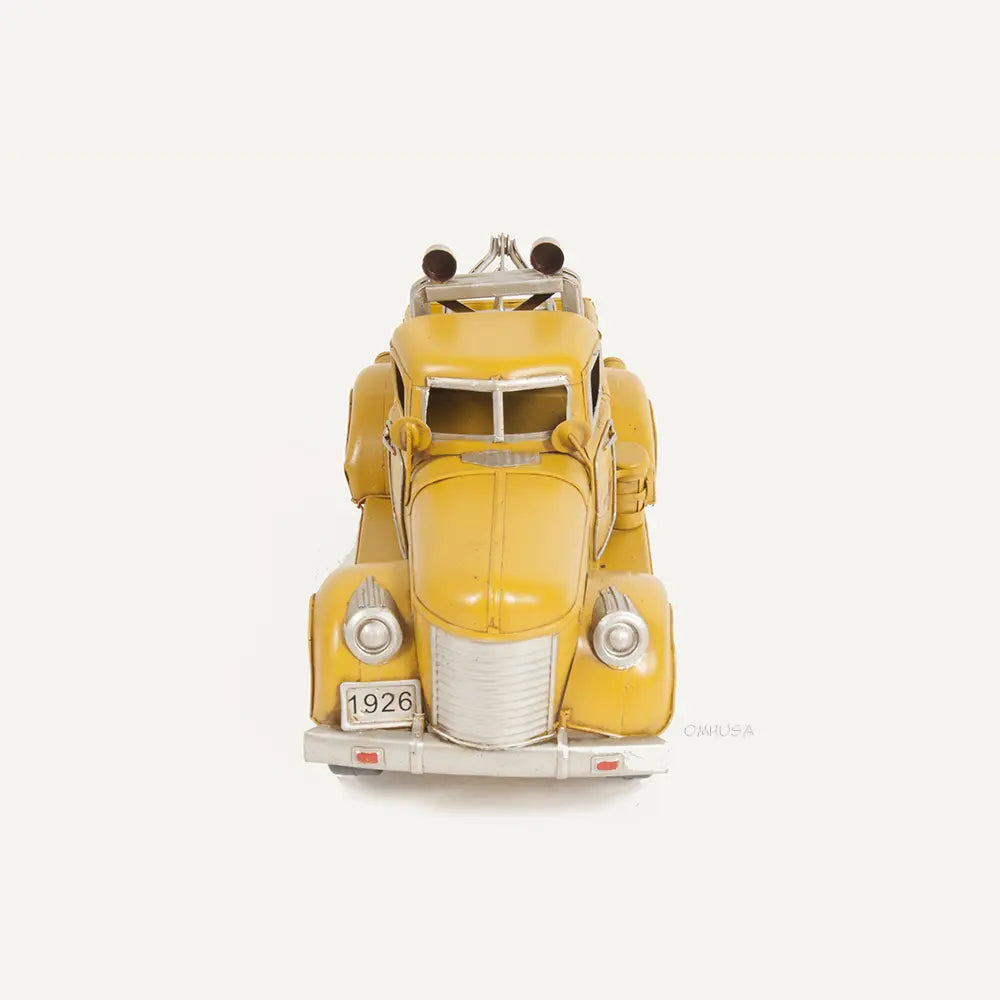 The tow truck was invented in 1916 by Ernest Holmes, Sr., of Chattanooga, Tennessee, a garage worker inspired after needing blocks, ropes, and six men to pull a car out of a creek. Upon improving his design he began manufacturing them commercially. Our 1926 Pennzoil Tow Truck Yellow model is beautifully handmade out of iron. It features many intricate details such as rolling wheels, big fenders, crane system, unique 1926 license plate, Pennzoil logo on the doors, front grill, headlights, side mirrors, front and rear bumper reinforcement, taillights, and more. A must-have for the tow truck enthusiast!