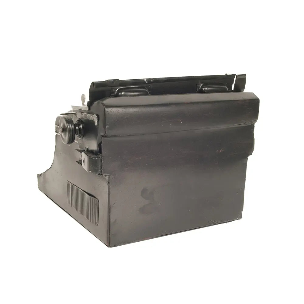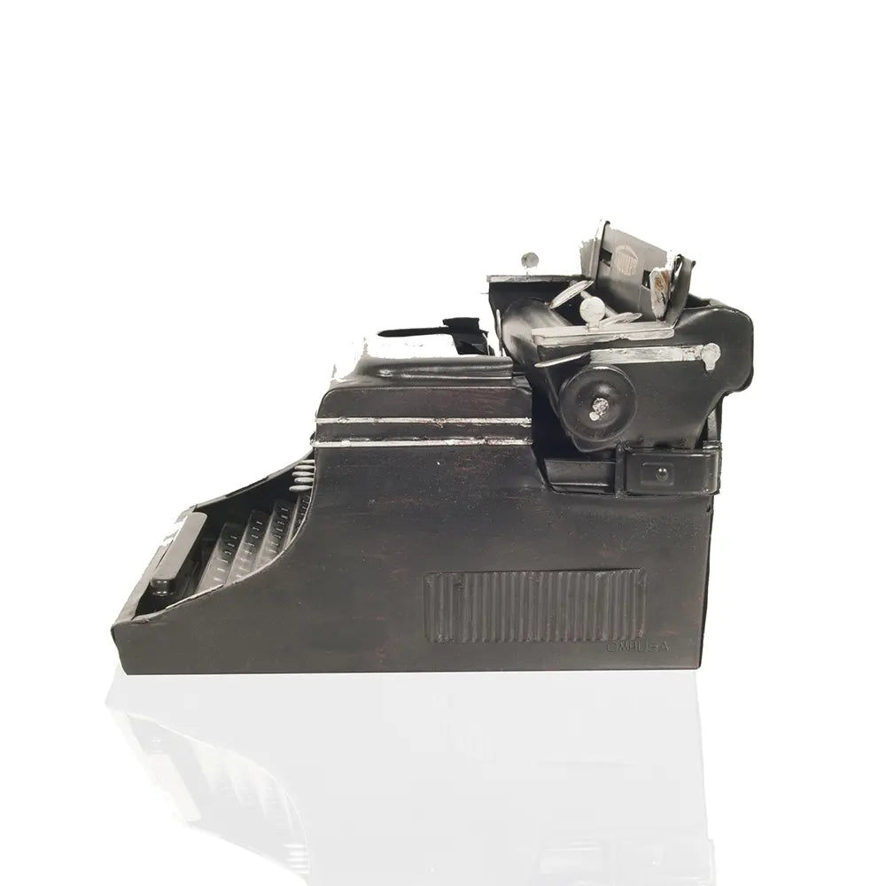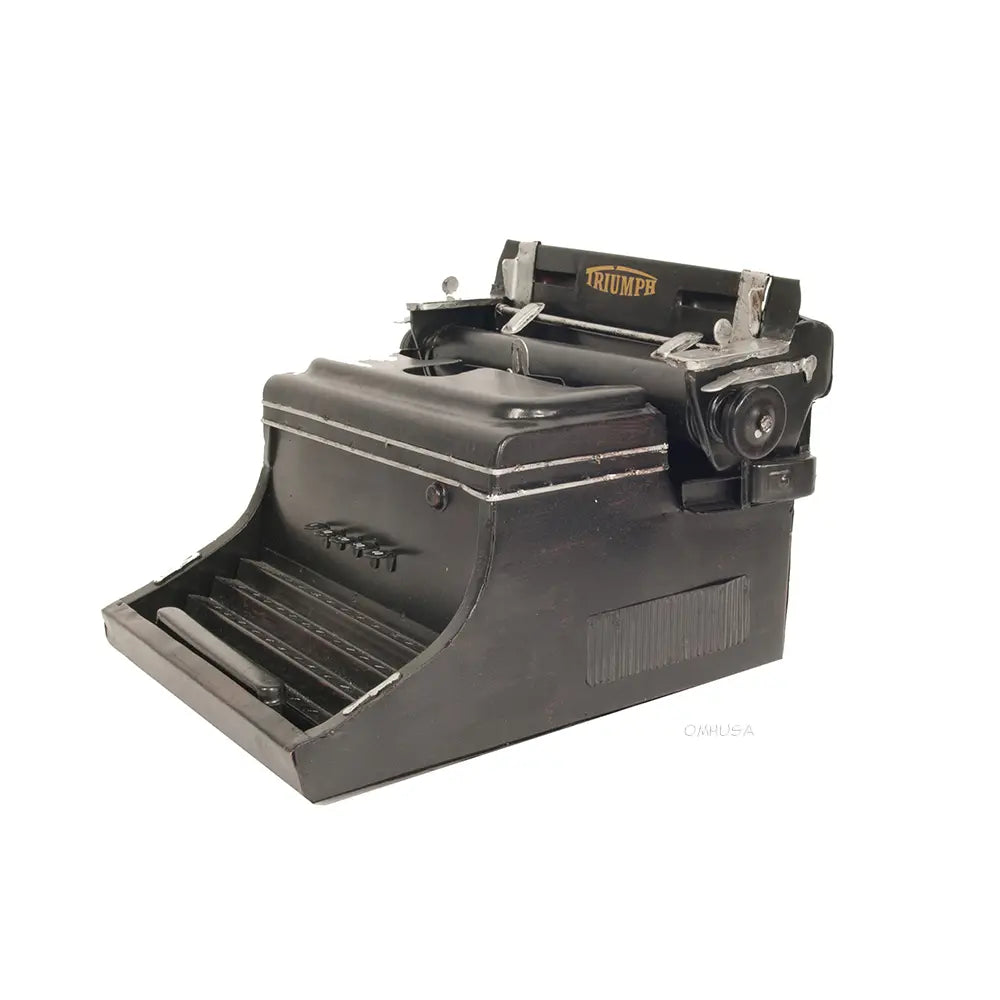 This 1945 Triumph Typewriter display-only model is elegantly handcrafted out of iron. Vintage in design, it is modeled on the iconic typewriters manufactured by Triumph Werke N�rnberg AG from 1907 to 1997 in N�rnberg, Germany. Our model features many intricate details such as typebars, keytop, shifts key, space bar, type lever, feed roller, platen knob, platen, paper finger, carriage release lever, unique Triumph decal, and much more. Display this vintage typewriter in your home or office as a fine conversational piece. A must-have for writers, collectors, and vintage enthusiasts!