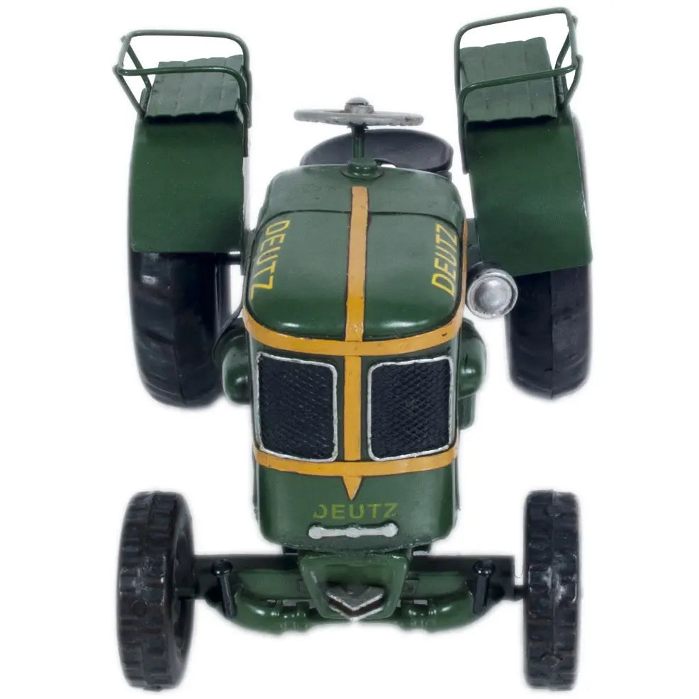 The "Universal tractor for large agricultural and forestry businesses". This is how Deutz advertised for the Deutz F4L 514 in Cologne-Deutz from 1952 onwards. With its 5322 ccm, air-cooled four-cylinder diesel engine and output of 47.5 PS, the Deutz F4L 514 was also the most powerful model that Deutz had to offer in its range of tractors until the mid-1950s. Our Deutz tractor model is handmade out of iron by master craftsmen. It features many intricate details such as wheels, seat, axel, engine, frame, steering wheels, headlight, and much more. Proudly display this model anywhere you like and it will surely make a conversational piece. A must-have for any collector and enthusiast!