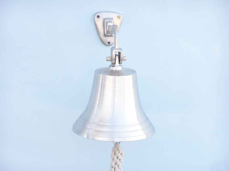This brushed nickel ship’s bell imparts a distinctive maritime feeling wherever it resides, whether hung outside as a functional bell or used as a décor item in a nautical themed room. This ship’s bell sounds as beautiful as it looks, and comes complete with a braided rope striking lanyard. For your satisfaction we offer a 100% money back guarantee, no hassle returns, in-store pickup, and professional packaging and inspections on all shipped items.