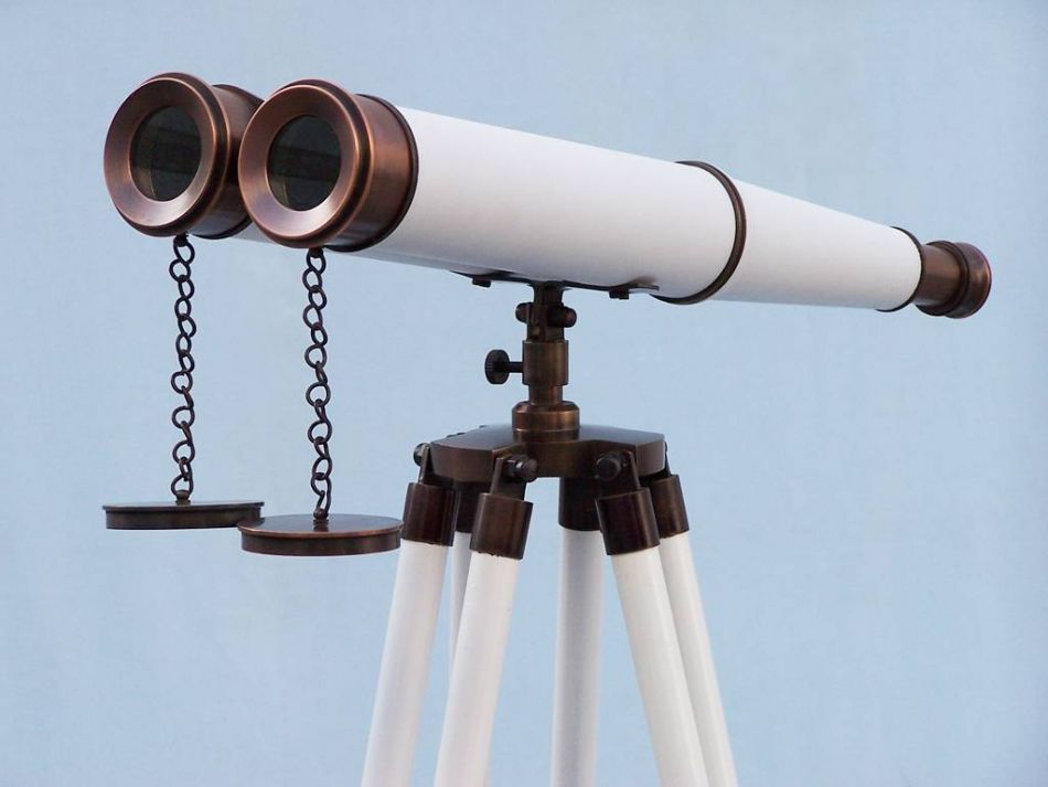 The Floor Standing Admiral's Bronze Binoculars 62", complete with a rare and expensive shisham wood tripod stand, is the perfect gift for the explorer in your family. This is a functional nautical décor item and looks great resting on a wood desk or between books on a wall cabinet. The picture of this amazing marvel does not do it justice.