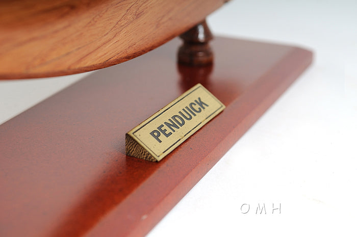 The model is secured tightly on a solid wood base with a brass nameplate. The mast and sail are folded down for easy packaging and shipping. It’ll make a perfect gift for home or office decorator, boat enthusiast, or passionate collector.