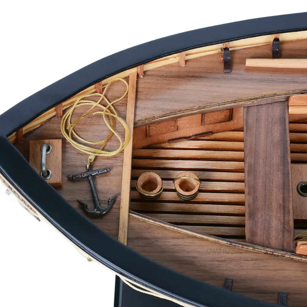 Our model is beautifully hand built from scratch using ’plank on frame’ construction method using the highest grade of western red cedar. It features intricate details such as wooden paddles, footings, thwarts, braces, ropes, flotation devices, rudder, tiller, lifelines, and much more. The model comes with a detachable wood stand and high precision laser engraved nameplate of Liverpool with star line flag and SS Titanic name on the model stern and front bow. Bring home this iconic lifeboat with a history that still echoes in our minds today. A must-have décor piece for any collector or enthusiast’s home!