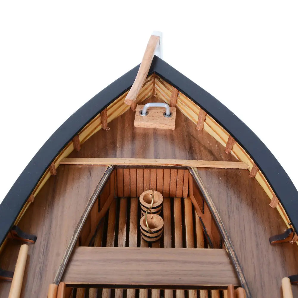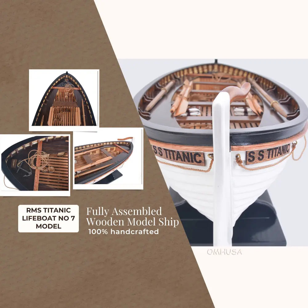 The RMS Titanic’s lifeboat model will surely bring back the memory of the most tragic sea disasters in modern history. Lifeboat 7 was a wooden starboard lifeboat and the first one to be lowered from the sinking Titanic. Although there was a capacity of 65 people, it left with only 28 people on board, thus with 37 empty seats. The reason why was that many women and children were reluctant to enter a small wooden lifeboat and preferred to stay on the massive ’unsinkable’, but sinking, Titanic.