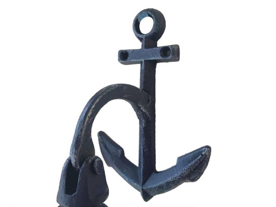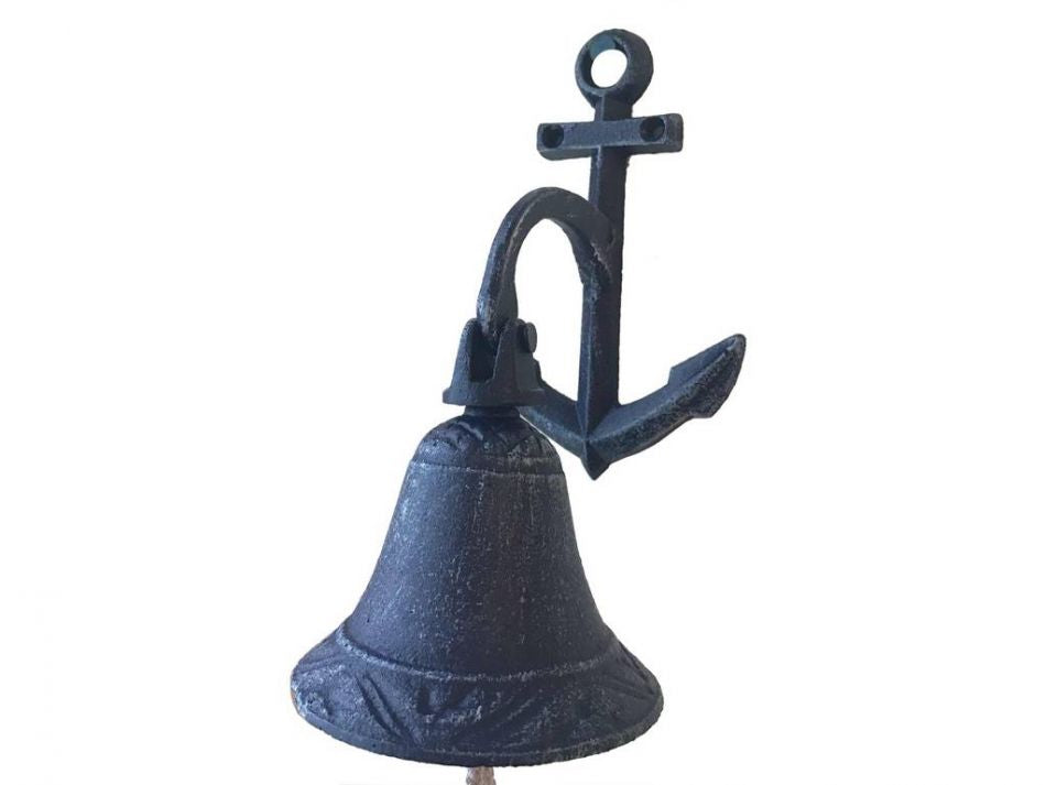 Rustic Dark Blue Cast Iron Wall Hanging Anchor Bell 8"