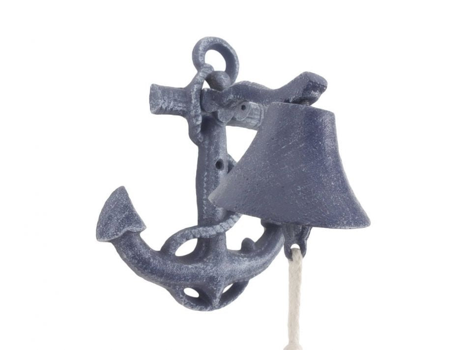 Rustic Dark Blue Cast Iron Wall Mounted Anchor Bell 8"